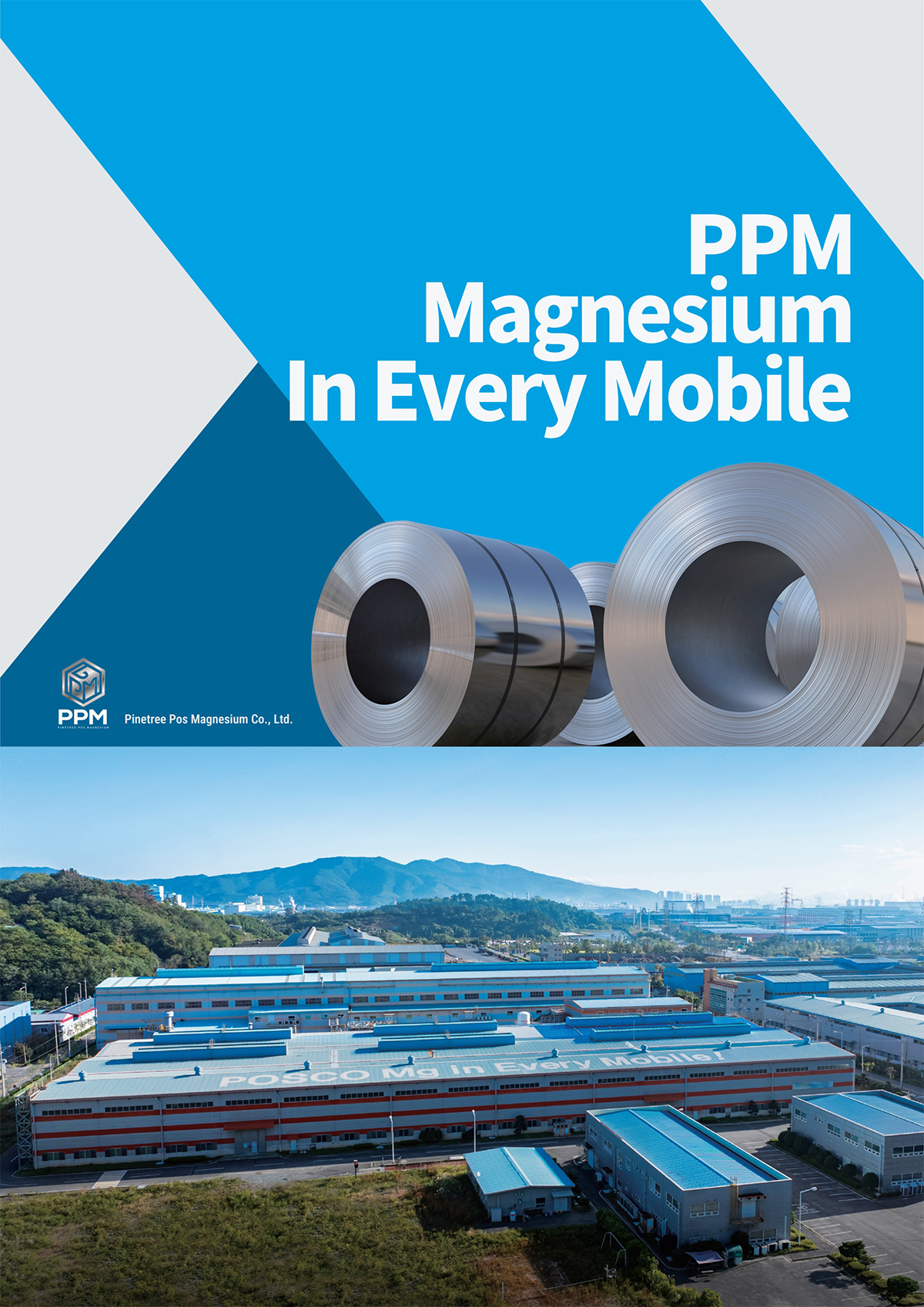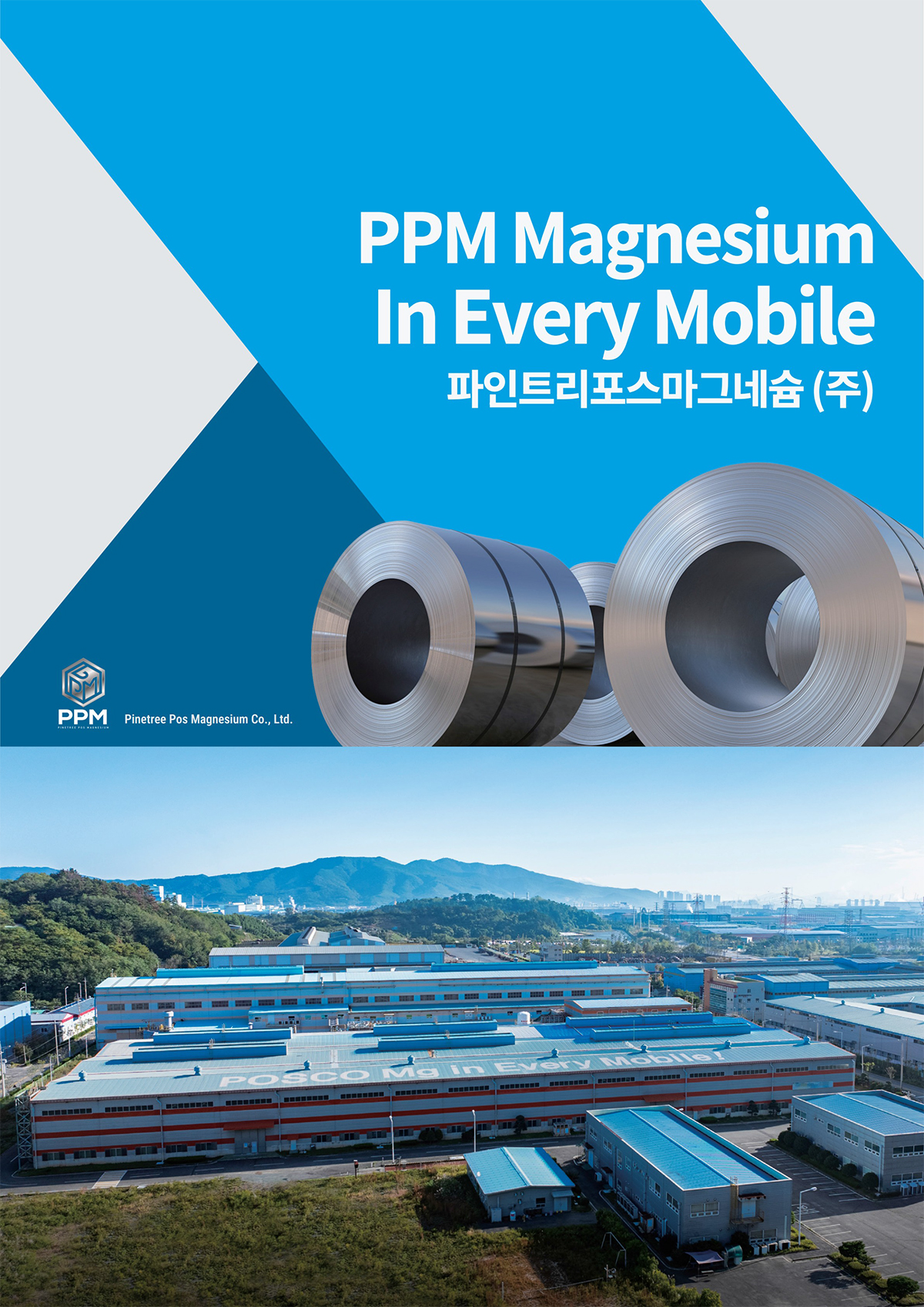 Mg 판재로 삶의 질 향상을 선도하는 파인트리포스마그네슘(PPM)입니다.